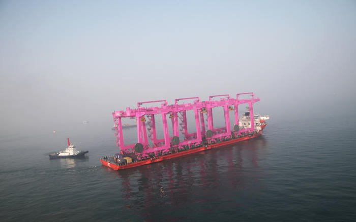 1月1日,青島海西重機(jī)為SNCT(韓國鮮光新港集裝箱碼頭有限公司)制造的8臺(tái)40噸自動(dòng)化軌道吊第一批次(4臺(tái))順利出海,成為2017年海西重機(jī)首批發(fā)運(yùn)的港機(jī)設(shè)備。