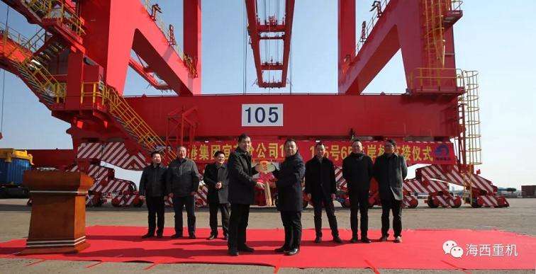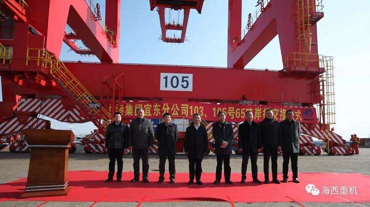 12月28日,由海西重機(jī)建造的2臺(tái)65噸岸橋交接暨列編儀式在上港集團(tuán)宜東集裝箱碼頭分公司隆重舉行。上港集團(tuán)宜東集裝箱碼頭分公司總經(jīng)理倪志平,黨委書記陳波,副總經(jīng)理廖勝前,黨委副書記、紀(jì)委書記、工會(huì)主席李軍,青島海西重機(jī)有限責(zé)任公司黨委副書記、總經(jīng)理張懷志,副總經(jīng)理代振華等出席儀式。
