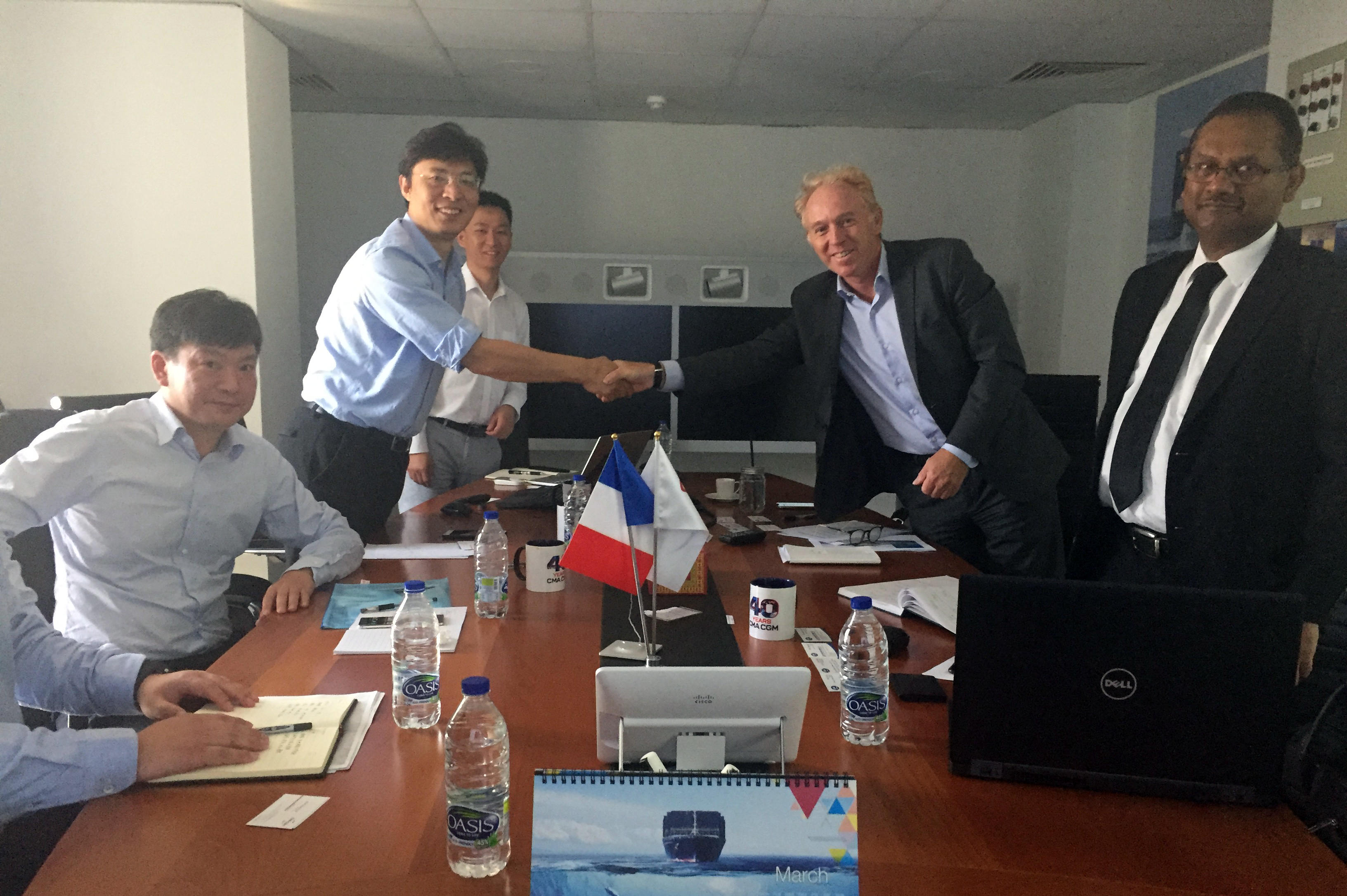 Mr. Courquin對(duì)馬聚勇一行的來(lái)訪表示熱烈歡迎,并介紹了達(dá)飛集團(tuán)及達(dá)飛海灣地區(qū)的發(fā)展情況。達(dá)飛海運(yùn)集團(tuán)(CMA CGM)總部設(shè)在法國(guó)馬賽,始建于1978年,是法國(guó)第一、世界第三的集裝箱承運(yùn)公司。Mr. Courquin希望通過此次會(huì)面,雙方可以增進(jìn)認(rèn)識(shí)、擴(kuò)大共識(shí)、建立互信,充分發(fā)揮雙方優(yōu)勢(shì),為開展合作墊定堅(jiān)實(shí)基礎(chǔ)。