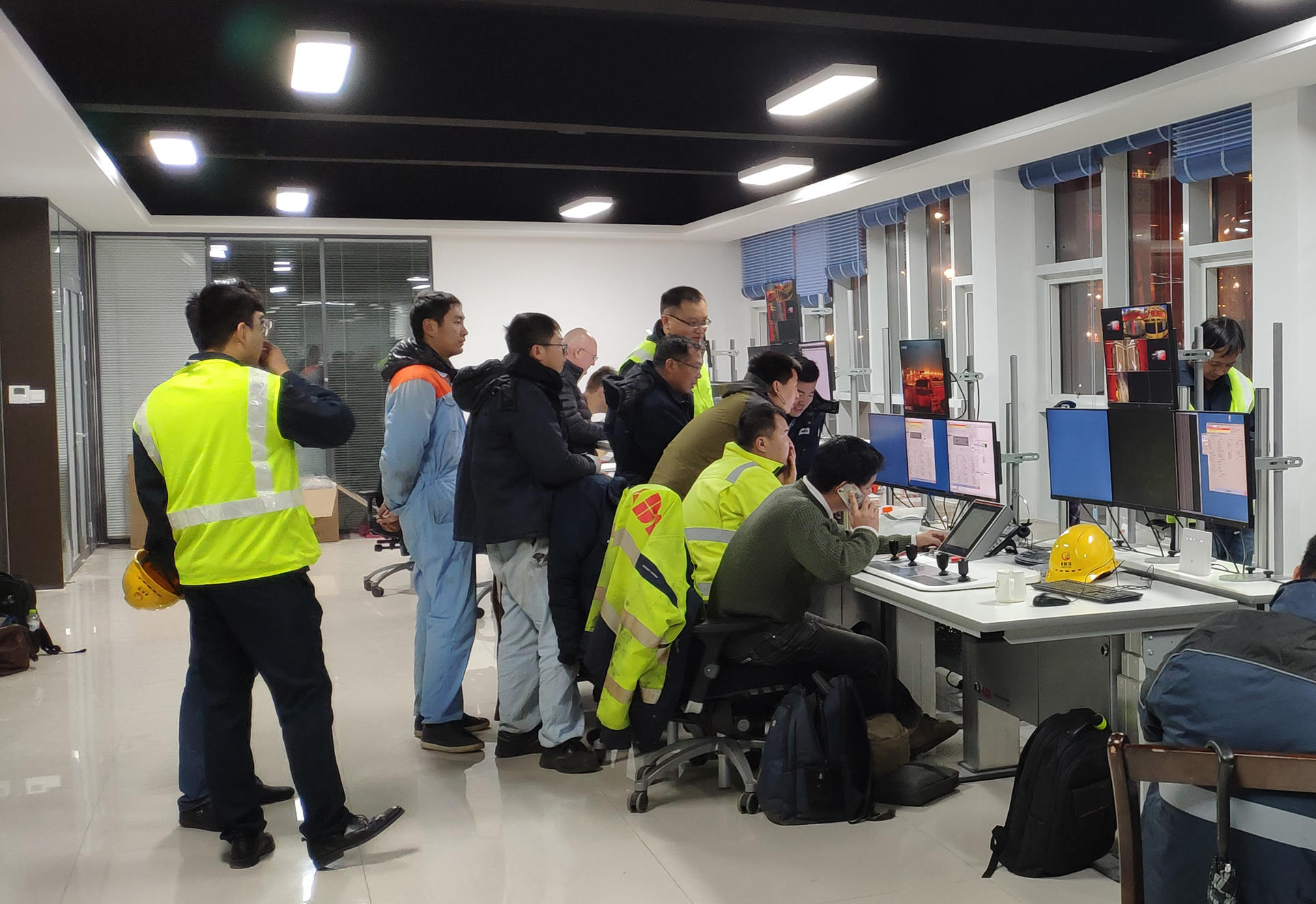 經(jīng)過11月份一個(gè)月的緊張努力,運(yùn)輸任務(wù)圓滿完成,藍(lán)圖成為了現(xiàn)實(shí)!現(xiàn)場調(diào)試階段,即使夜幕降臨,施工現(xiàn)場還是燈火通明,各個(gè)班組緊張有序地對當(dāng)天的工作收尾,遠(yuǎn)控中心調(diào)試工作有序進(jìn)行,不管多晚,技術(shù)人員都會對當(dāng)天工作進(jìn)行總結(jié),制定第二天的生產(chǎn)計(jì)劃。