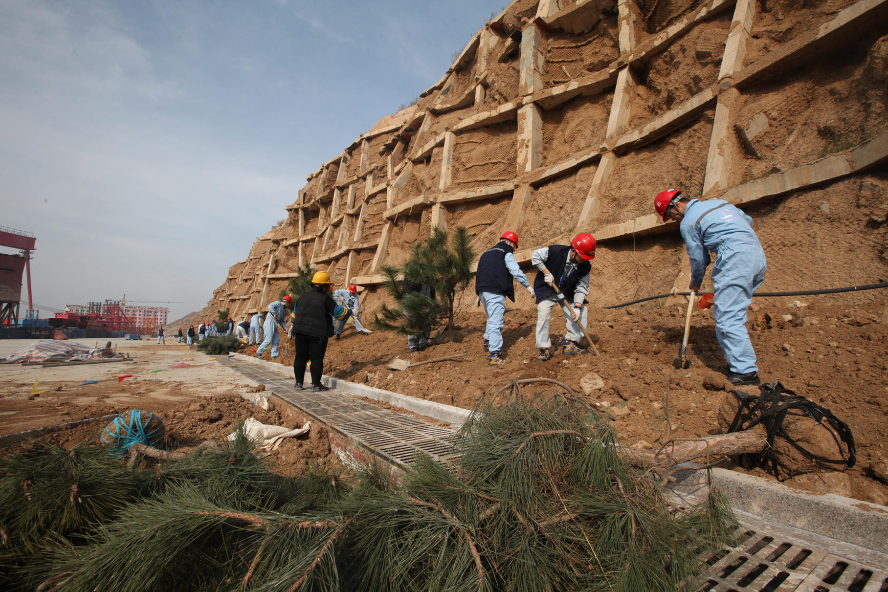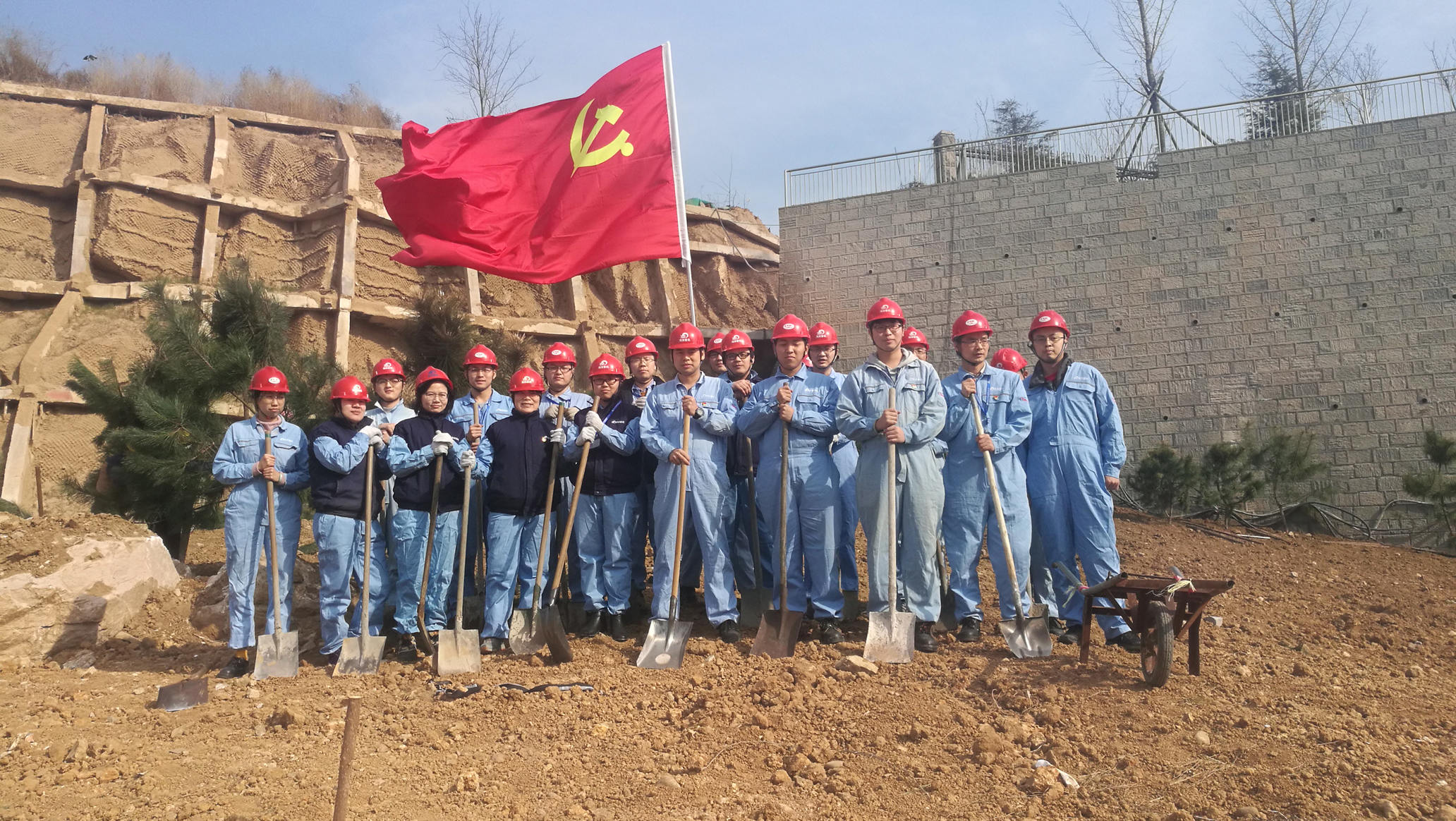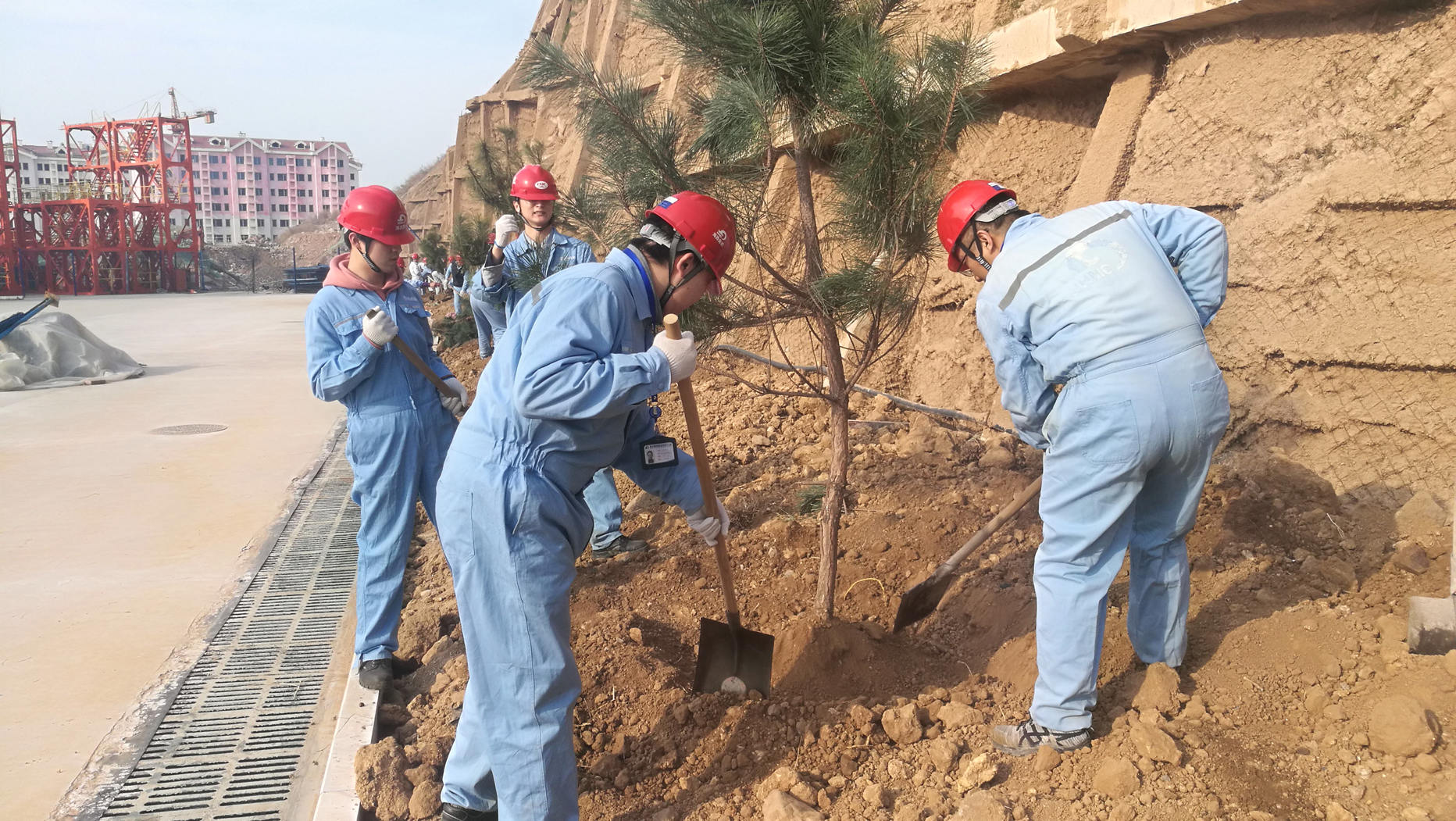瘠地力挖苗培入,荒坡手植樹皆嘉。三倆人,一棵樹。在廠區(qū)的新建護(hù)坡下,大家熱火朝天的忙著,紛紛揮鍬鏟土,定點(diǎn)挖坑,放苗回填,你扶我植,好不熱鬧。在春天植入希望,我們?cè)苑N的不僅是常青樹,更是快樂和責(zé)任。