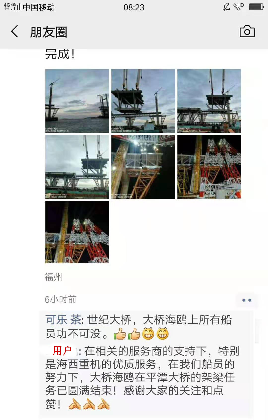 7月28日接到用戶通知,“大橋海鷗號(hào)”將于7月28日晚進(jìn)行第64、65片8鋼梁的架設(shè)(單重達(dá)3200噸),為保證工程順利實(shí)施,請(qǐng)海西重機(jī)安排技術(shù)人員進(jìn)行保駕護(hù)航,用船長(zhǎng)的話就是“你們?cè)诂F(xiàn)場(chǎng),感到心里踏實(shí)”。公司當(dāng)即安排附近正在羅源灣碼頭做電控系統(tǒng)改造的宋靖浩工程師,前往現(xiàn)場(chǎng)。7月2900日傍晚5點(diǎn),吊裝正式開(kāi)始,各崗位人員各負(fù)其責(zé),密切配合。直到凌晨時(shí)分,2片鋼梁順利架設(shè)完成,設(shè)備運(yùn)行一切正常,用戶對(duì)海西重機(jī)設(shè)備的穩(wěn)定性和服務(wù)的及時(shí)性給予了高度評(píng)價(jià)。至8月6日,平潭海峽公鐵大橋,最后一片鋼梁順利架設(shè)完成, “大橋海鷗號(hào)”不辱使命,圓滿完成任務(wù)。用戶喜悅的表?yè)P(yáng),就是對(duì)我們優(yōu)質(zhì)服務(wù)的認(rèn)可和正反饋。