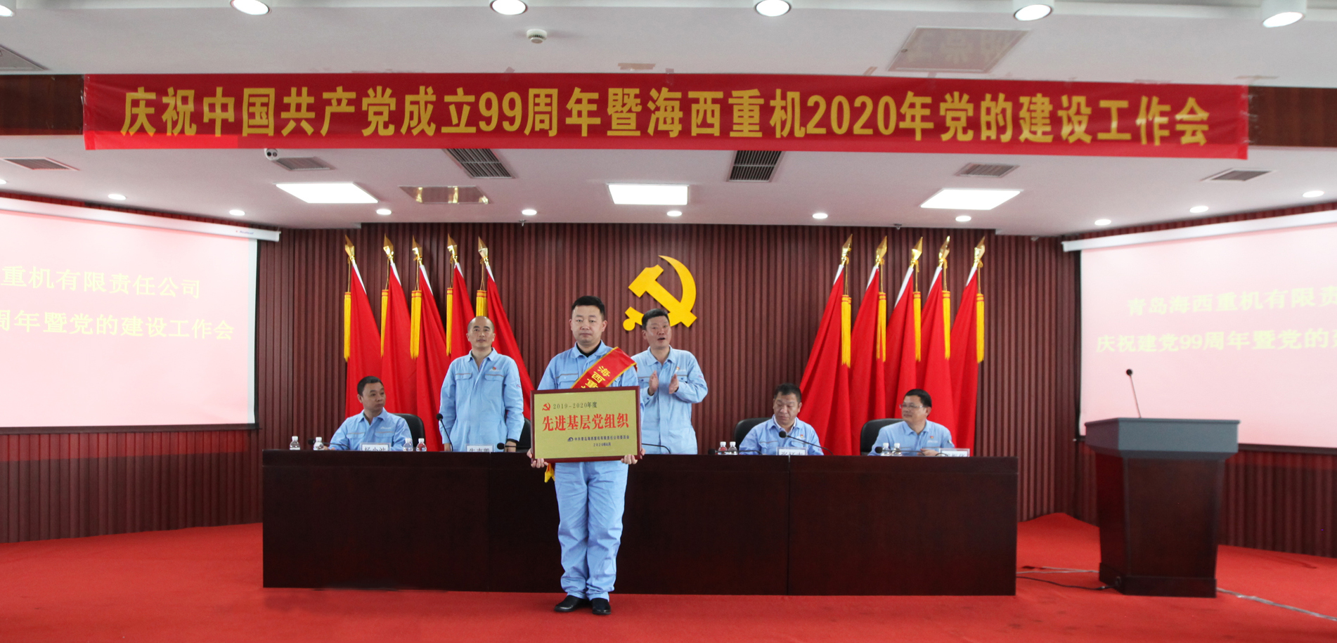 7月15日,武漢船機海西重機召開慶祝中國共產(chǎn)黨成立99周年暨2020年黨的建設工作會,總結回顧一年來黨的建設工作,分析面臨的形勢任務,安排部署下一階段公司黨的建設和生產(chǎn)經(jīng)營重點工作,表彰先進集體和優(yōu)秀個人,開展黨員攻關小組授旗儀式,開展新黨員入黨宣誓,動員全體黨員干部不忘初心、牢記使命,努力踐行“三品三心”企業(yè)核心價值觀,全面打贏疫情防控和生產(chǎn)經(jīng)營兩大戰(zhàn)役,以優(yōu)良業(yè)績慶祝中國共產(chǎn)黨成立99周年。會議由公司黨委副書記、紀委書記朱聲凱主持。