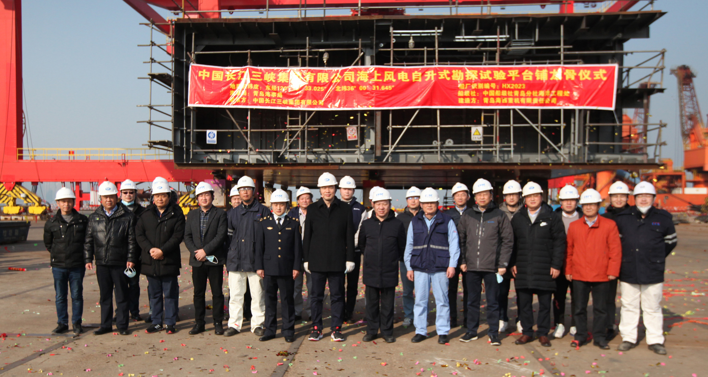 12月22日上午,在青島海事局、中國(guó)船級(jí)社青島分社、中國(guó)長(zhǎng)江三峽集團(tuán)有限公司、中國(guó)船舶集團(tuán)旗下武漢船機(jī)海西重機(jī)各方代表共同見證下,“中國(guó)三峽101”海上風(fēng)電自升式勘探試驗(yàn)平臺(tái)順利完成鋪龍骨儀式,標(biāo)志著該項(xiàng)目正式進(jìn)入平臺(tái)搭載建造階段。