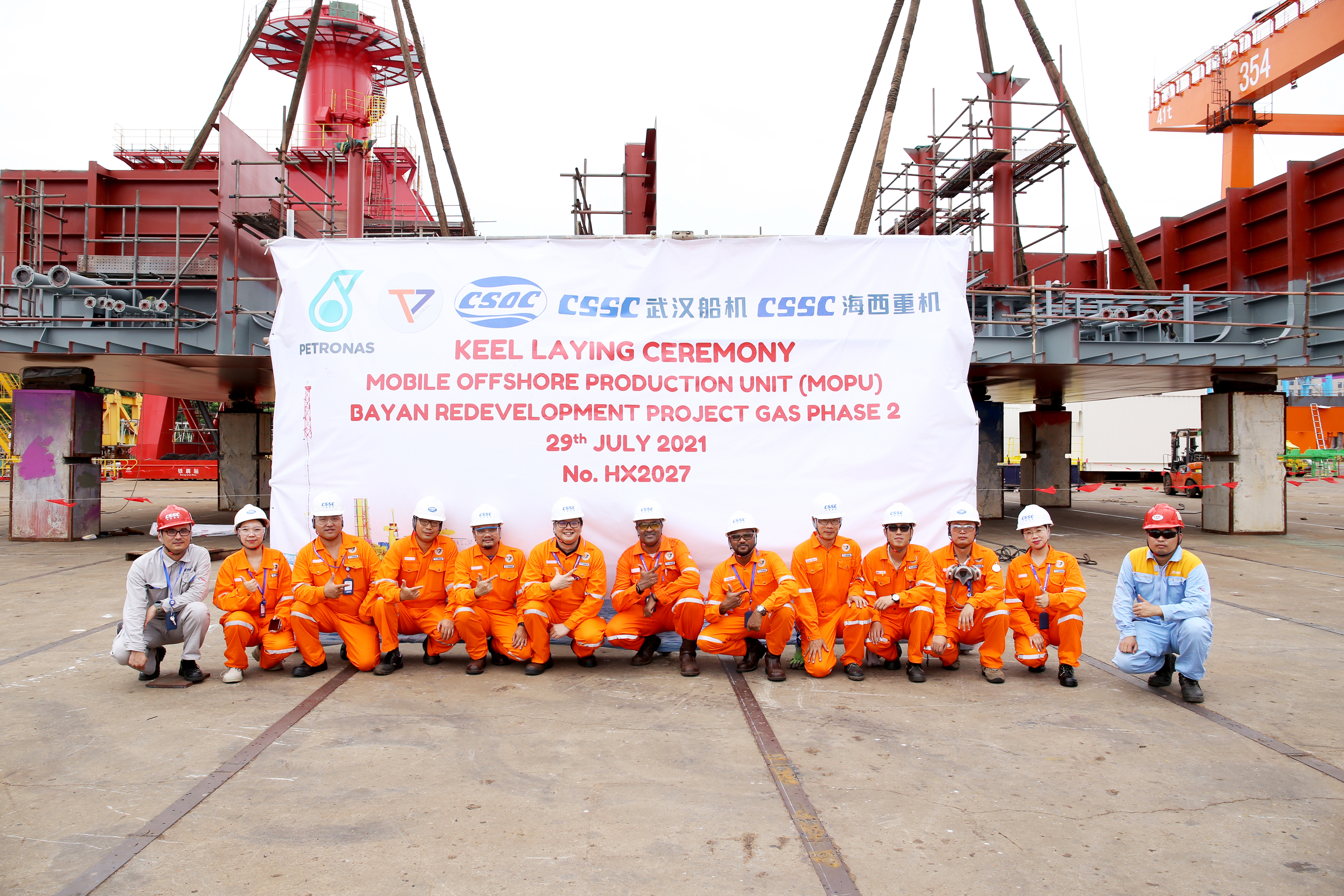7月29日,馬來西亞可移動自升式生產(天然氣)平臺(簡稱MOPU)鋪龍骨儀式順利舉行,標志著該平臺正式進入船臺搭載階段。馬來西亞國家石油公司、T7 Global公司、ABS、中國船貿、中國船舶集團旗下武漢船機海西重機各方代表通過現(xiàn)場會和遠程視頻直播的方式參加了該儀式。