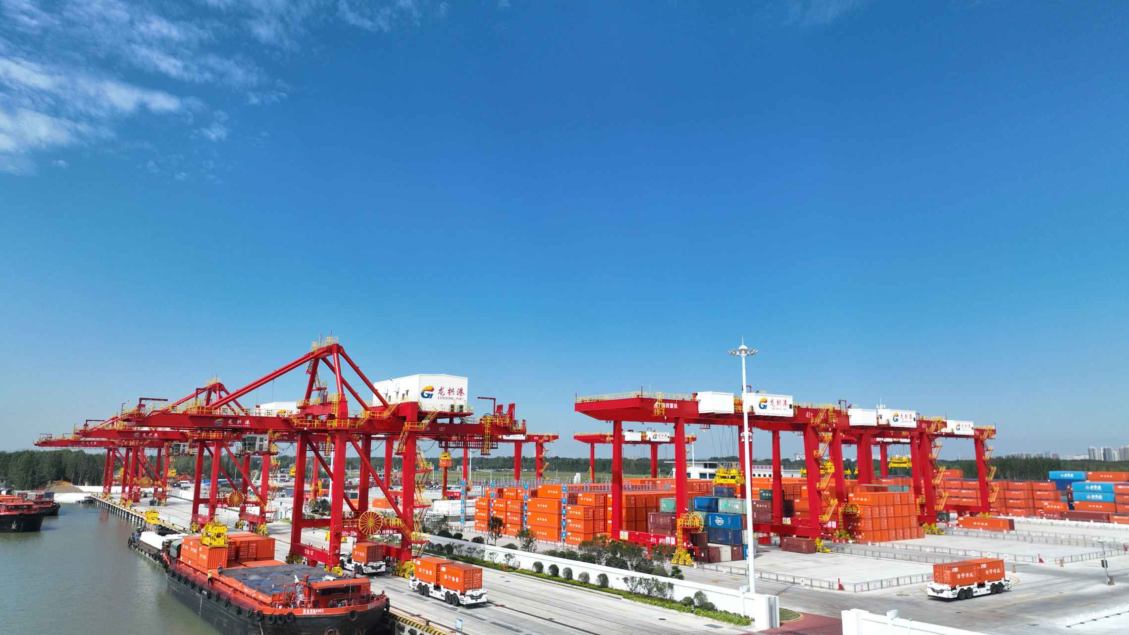 作為老朋友,2022年海西重機已為濟寧龍拱港建設工程項目打造了2臺50t-20m自動化岸橋和4臺41t-35m自動化軌道吊,設備投產(chǎn)運行效果良好,開啟了江北內(nèi)河綠色化、智能化集裝箱運輸新模式,獲得用戶稱贊。