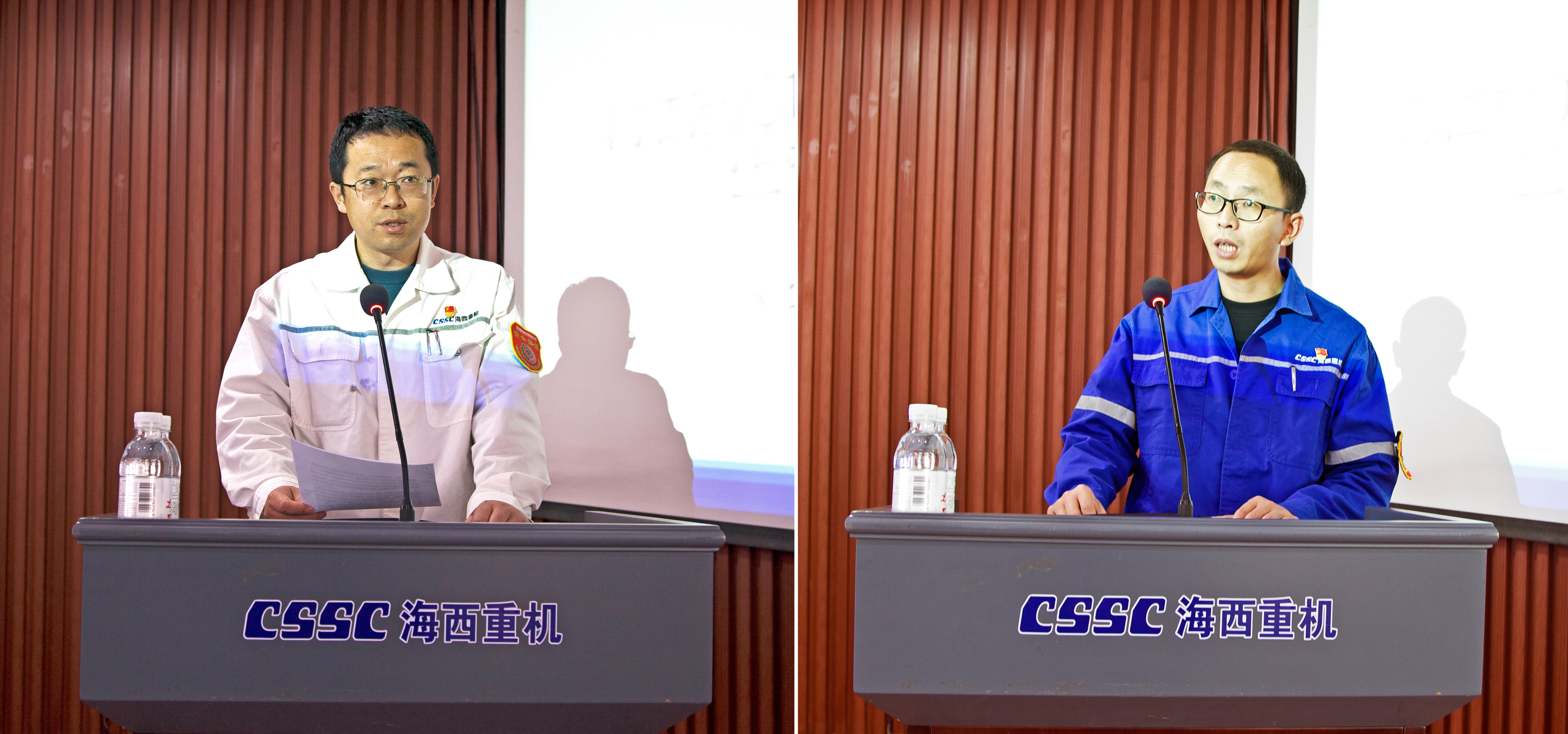 會(huì)上,海西重機(jī)海工部部長(zhǎng)商圣偉代表生產(chǎn)部門進(jìn)行發(fā)言,分享了去年海工項(xiàng)目做的好的工作經(jīng)驗(yàn),同時(shí)對(duì)今年安全生產(chǎn)工作進(jìn)行表態(tài),將帶領(lǐng)海工項(xiàng)目團(tuán)隊(duì)順利完成公司黨委交付的任務(wù),為公司高質(zhì)量發(fā)展交上一份滿意的答卷;項(xiàng)目管理部副部長(zhǎng)柯誠(chéng)同志分享了在濟(jì)寧港航龍拱港批量設(shè)備交機(jī)期間的工作體會(huì),從“品牌、執(zhí)行和學(xué)習(xí)”三個(gè)方面講述了龍拱港干部職工迎難而上、頑強(qiáng)拼博,埋頭苦干、善干巧干、敢于攻堅(jiān)克難的工作作風(fēng)。