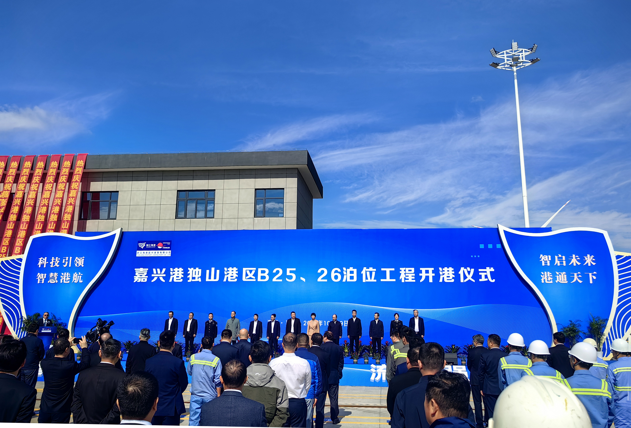 10月29日上午,浙江省海港集團、寧波舟山港集團嘉興港獨山港區(qū)B25、26泊位和Ⅱ號內(nèi)河港池開港儀式舉行。這標志著嘉興港又一個萬噸級碼頭和海河聯(lián)運作業(yè)區(qū)正式投入使用。海西重機作為項目參建單位參加儀式。