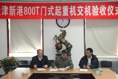 2012年4月7日,天津新港船舶重工第二臺800噸龍門吊交機(jī)驗(yàn)收儀式在業(yè)主方隆重舉行。