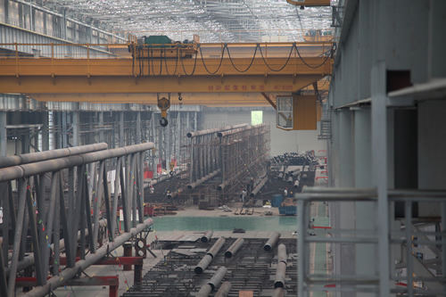F1項目工期緊、要求高、難度大,我工藝部針對施工中所發(fā)生的問題,快速溝通協(xié)調(diào),不斷優(yōu)化施工工藝。協(xié)助鋼構(gòu)部明確各節(jié)點工期目標(biāo),充分調(diào)動了員工的積極性、主動性和創(chuàng)造性。目前,施工人員已克服了主管對接、支管裝配和焊接等難點,成功完成了臂架中部4件120米長、110噸重的桁架分片的制作和豎起,為該項目的按期完工奠定了堅實的基礎(chǔ)。