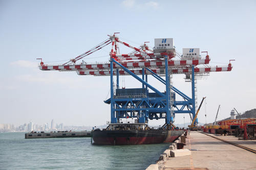 該項目是海西重機按華能(福建)海港有限公司要求量身打造,屬于國內(nèi)主流散貨卸船設備。最大生產(chǎn)能力1800T/H,額定起重量42T,能滿足左右行走250M卸船碼頭的工作要求;嚴格按FEM標準執(zhí)行,可24小時連續(xù)作業(yè)。國內(nèi)首次在大型卸船機領域配有雙料斗系統(tǒng),實現(xiàn)了同時為兩條皮帶機給料和碼頭運載車供料的功能;且料斗結(jié)構(gòu)首次采用圓角設計,解決了鎳礦粘稠性大,容易堵料和漏料的問題,工作效率大幅提高。