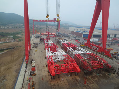 6月23日,由青島海西重機(jī)承制的3600t浮式起重機(jī)在突堤碼頭順利完成臂架安裝第一吊。該浮式起重機(jī)臂架總長130m,寬24m,高10m,臂架總重1000噸。此次吊裝的順利完成對公司的碼頭吊裝作業(yè)具有里程碑式的深遠(yuǎn)意義,為后續(xù)大型岸橋整體吊裝上船、海工平臺吊裝組裝等大型吊裝作業(yè)奠定了堅實(shí)基礎(chǔ)。