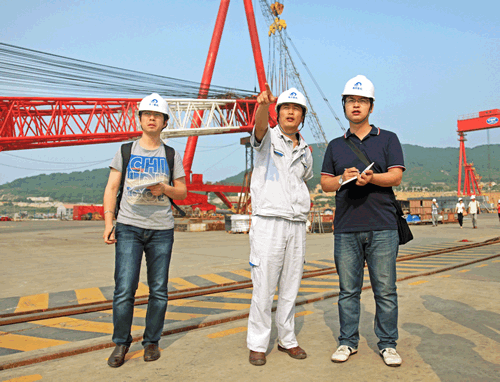 在公司領(lǐng)導(dǎo)的陪同下,記者們參觀了在制的國內(nèi)首臺(tái)擁有完全自主知識(shí)產(chǎn)權(quán)和平臺(tái)上設(shè)備國產(chǎn)化率最高的90米自升式多功能海洋生活平臺(tái)項(xiàng)目、為海南洋浦批量研制的岸橋等,聽取了海西重機(jī)整體產(chǎn)業(yè)發(fā)展布局、技術(shù)創(chuàng)新及成果以及中長期的發(fā)展規(guī)劃等。